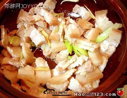 - ·操 作: 1、先煸炒一下五花肉,锅内放姜片、花椒、葱段和适量水,水开后下五花肉煮约10分钟,肉熟后捞起切片,肉汤留着一会用。