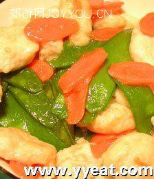 (3)起锅放少许油,烧热,投入全部主配料,加入鸡汤及调料翻炒,用水淀粉勾芡,淋明油出锅。