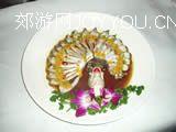 2、将紫苏叶、姜片放在圆盘中央,再放上头、尾,鱼肉背部花刀口朝外,围绕鱼头摆成扇形,上面再撒上精盐、味精、黄灯笼辣椒酱、蒸鱼豉油,上笼旺火蒸10分钟后取出,撒葱花、胡椒粉,淋上烧热的植物油即可。