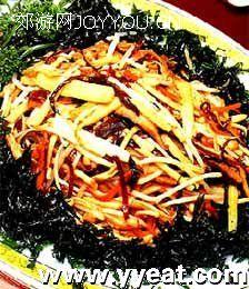 5、烧红油镬,把1、2丝料及金菇、银芽一起炒,加入盐调味即可上碟。