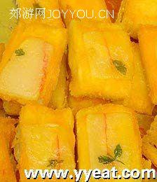 5)移入旺火,倒入余量油炸至金黄色,捞出后切成小片,整齐地码在盘内即成。