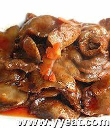 2) 起国放油烧热,将牛头肉炸至金黄色捞出;