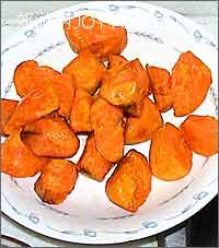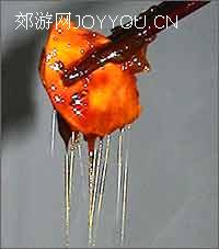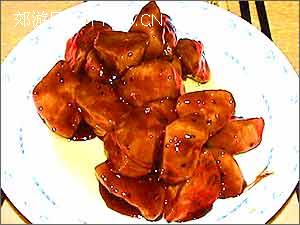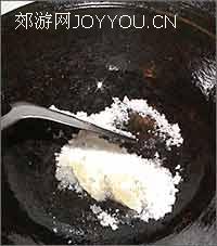 地瓜切成滚刀块,油烧6分热下,中火,炸大概5分钟,捞起,锅中油烧至8、9分热,复炸一次。另取一口锅,放底油,很少的油。放入小半斤白糖。初学用白沙糖就可以。不停的搅动,待糖溶解,变色后继续搅动,慢慢的会起泡,这期间要一直搅动。这个是拔丝地瓜熬糖的小火。 待糖突然由多变少,迅速把地瓜倒入锅中翻炒,盛盘即可。上桌的时候要上碗白水,沾着吃,才不沾牙。如果是做拔丝苹果或香蕉什么的,就要裹蛋白糊