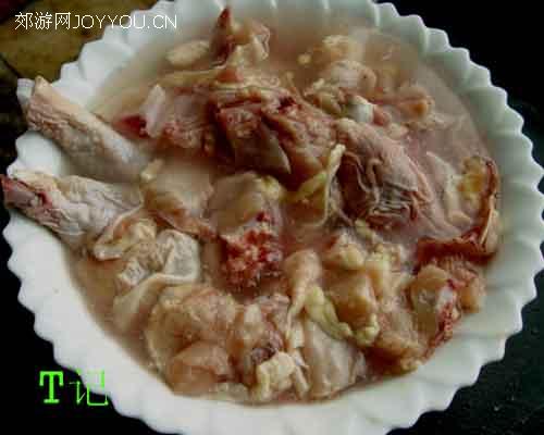 2、洗净斩成小块,清水浸泡10分钟后飞水。