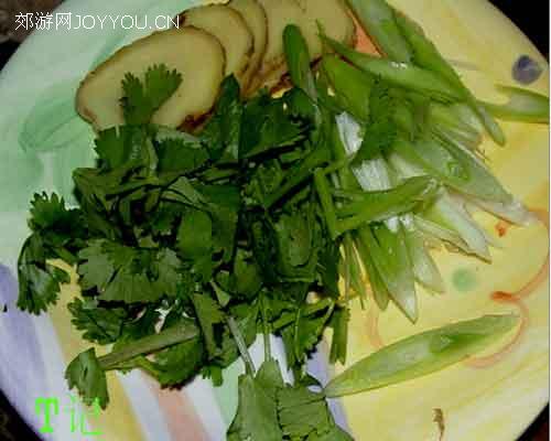 5、葱丝、姜片、香菜末各备适量。
