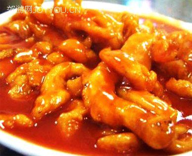 用料:猪里脊肉300克,青椒、胡萝卜各30克,葱2支,大蒜2粒,蛋黄1个,酱油1大匙,淀粉1小匙,番茄酱2大匙,白醋、糖各1大匙,米酒、盐、胡麻油各1小匙。