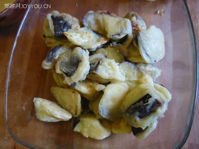 炸好了照个相:就是这个样子,或者还可以黄些。但里面已经很软了,因为有面糊,所以茄子不会烂掉。