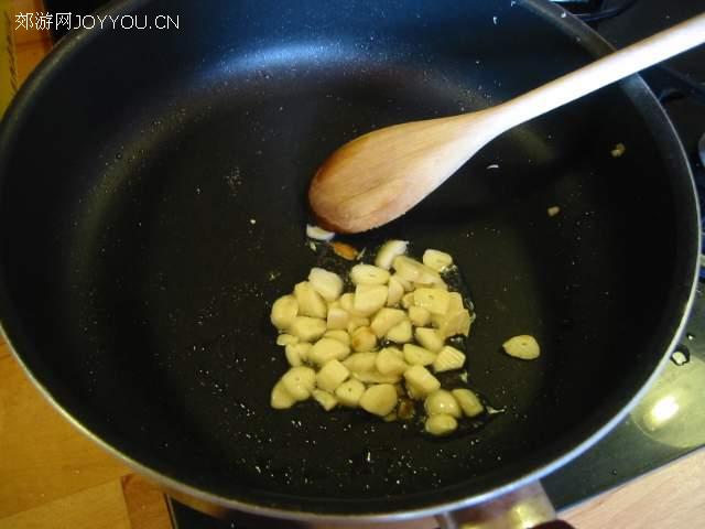 把蒜瓣放入爆香