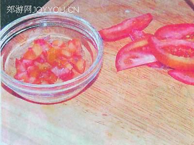 2、将番茄剁成茄茸待用。
