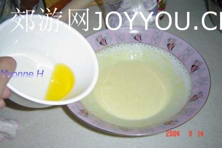 加如牛奶45ML,黄油化开30ML加入,搅拌均匀