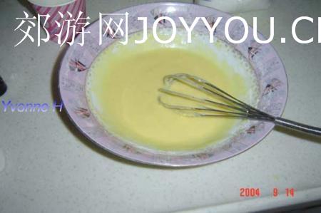 两个蛋黄加50G糖打发,要打到发白,大概这个样子
