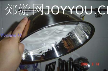 蛋白加5ML白醋打发,怎么样才算打到硬性发泡,打好了呢,就是把盆子倒过来,蛋白不会掉就算是打好啦