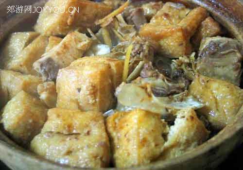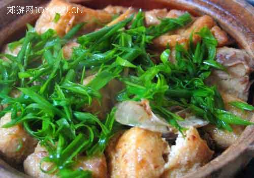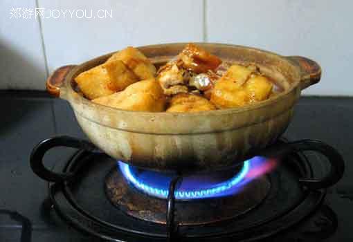 把调好味的鱼头豆腐放入沙煲里,加少许水,慢火煮