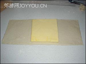 A.塔皮材料:低筋面粉270克,高筋面粉30克,酥油45克,片状马琪琳(包入用,就是植物黄油)250克,水150克左右(根据面团的软硬程度逐渐添加,不要一下子都倒进去)。