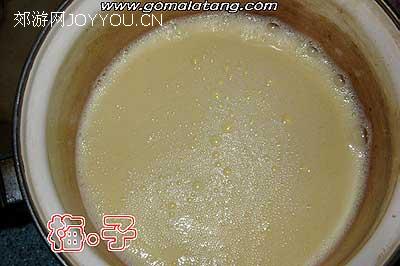 3、蛋黄两个,牛奶240ML,糖40ML混合均匀中火煮一会至糖溶就行了,不要煮开了。