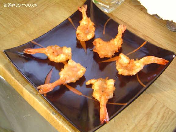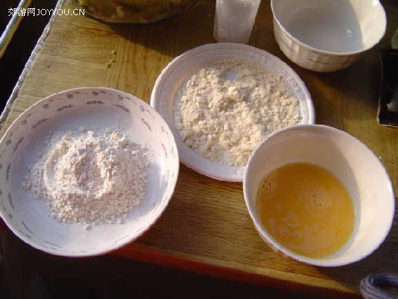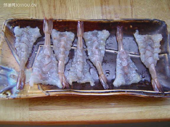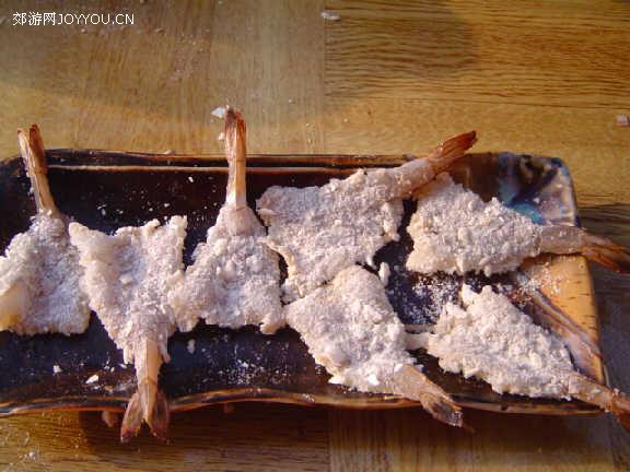 按照鸡蛋——面粉——面包渣的顺序依次将虾裹好