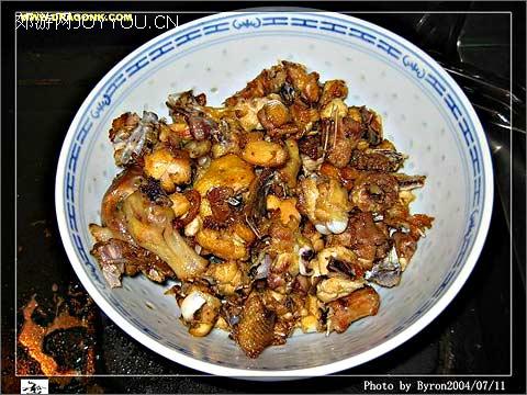 1、挑选大小适中子鸡一只,宰杀洗净,剁块,下油锅炸至金黄,起锅备用!
