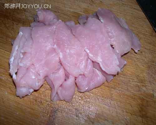 3、用蛋清、淀粉浆一下肉片。