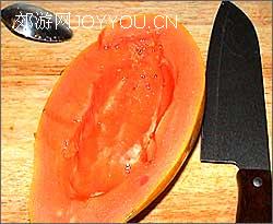 步骤一:木瓜洗净,剖开