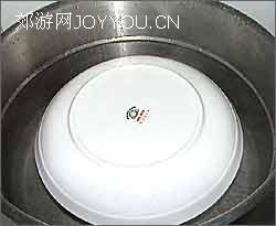 步骤六:放入锅里,盖个盘子,锅内加水(大碗底下垫根筷子),开火隔水炖,大火10分钟,小火煨1个小时