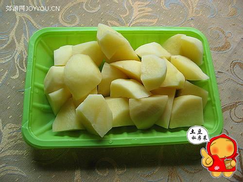 材料三:土豆 土豆洗净去皮切滚刀块。