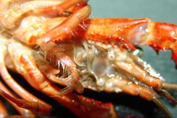 从这个角度可以看到小龙虾的口器已经去除,其实要洗干净也不是没有可能,不过就是太累,直接剪掉就可以了。