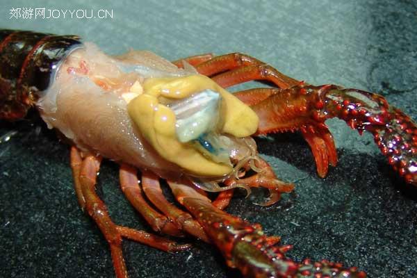 这是剥去头部外壳的小龙虾,我们可以看到充当消化器官的胃囊,很脏的啊!这个必须去掉。