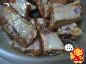 1。肋排洗净斩一寸段块,放入调配好的腌料腌渍两小时左右;