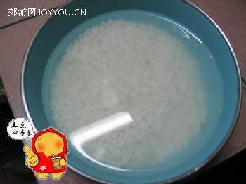 2。同时将糯米淘洗干净,加水也浸泡两个小时后沥干备用;