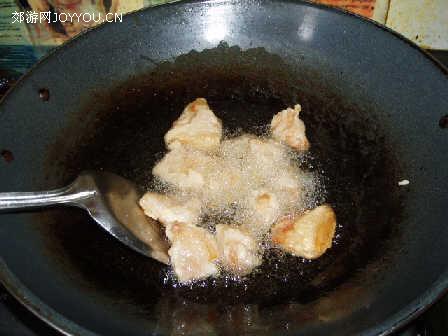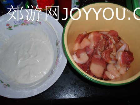 肉切厚片,用盐、味精、白糖、花椒粉、料酒、腌半小时