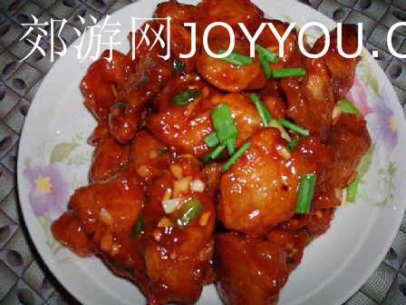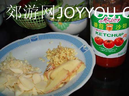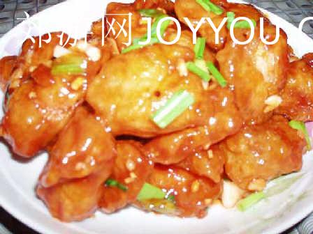 将番茄酱,白糖,味精,少许盐,水,调成混和汁,另外一个碗做一点水淀粉。锅中留少许油,姜末蒜泥改小火,倒入番茄酱混和汁翻炒,适时倒入水淀粉勾芡,将炸好的肉倒入挂汁,洒上葱花