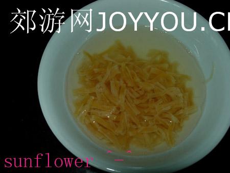 瑶柱用热水浸泡至软,撕碎(泡瑶柱的水留着一起煮,很鲜的)