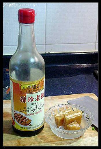 老抽和糖,原来的方子说用冰糖最好,家里的冰糖没有了,我觉得用片糖应该可以的。