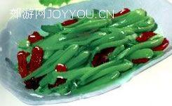 【风味特点】 碧绿点红,咸鲜爽口。