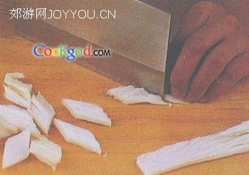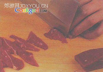 2、牛肉剔去筋,切成薄片。