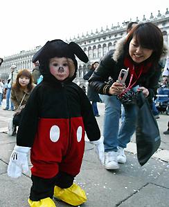 威尼斯狂欢节上扮成米老鼠的儿童(图)