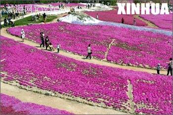 4月25日,漫山遍野的芝樱盛开在日本广岛的罗郡世罗西町。60万株盛开的芝樱芳香扑鼻,人们徜徉其中,有如痴如醉之感。