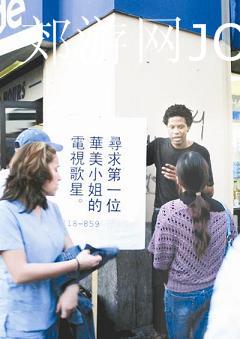 据美国《世界日报》报道,纽约皇后区法拉盛街头近日出现一位非洲裔青年里德斯(Leathers)举着大大的告示牌,上头印着斗大的中文字“寻求第一位华美小姐的电视歌星”,由于他就站在地铁站旁,引起往来众多行人的好奇观望。