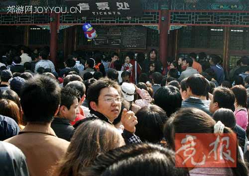 售票厅门口排了8支长队,每支队伍有上百人