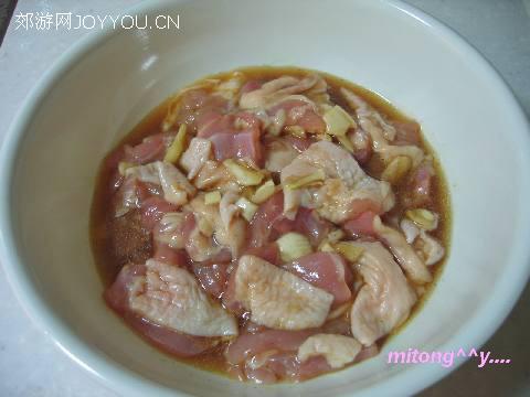 鸡肉腌料:酱油、酒、五香粉、胡椒粉、香油、少许的糖、蒜。