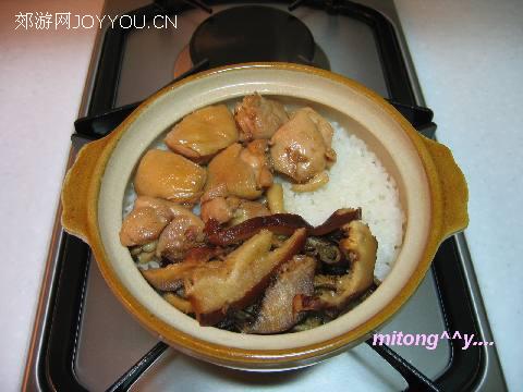 北菇滑鸡煲仔饭铸好了,赶快趁热吃吧!