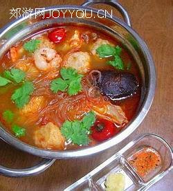 3、制作程序: 1、制卤水。炒锅置旺火上,下菜油烧到6成熟后,下郫县豆办(先朵细)煵酥,速放入姜米、花椒炒香后立即下鲜汤。再放入舂茸的豆豉、研细的冰糖、牛油、醪糟汁、料酒、精盐、胡椒粉、干辣椒、草果等佐料。熬开后打去泡沫即成卤水。 2、制主料。将劳菜洗净、兔腰、鳝鱼、鸭肠切成2厘米长宽的方块;毛肚、猪环喉切成4厘米左右见方。午餐肉切成4厘米左右见方的薄片;素菜切成3厘米左右的薄片。用洗净的竹签,将肴穿成约三四十克一串。 3、烫制。卤水锅置旺火上,使之保持小沸,将各类菜用串好的竹签烫制,根据不同菜肴的火候烫制成熟。 4、蘸食。烫制成熟的菜肴放在装有辣椒面和炒盐的盘内,根据自己的口味需要蘸辣椒和盐后食用。或蘸或不蘸,或多或少由自己决定。 容易出现的问题及解决方法: 烫制的成品不熟。麻辣烫使用的主料应是比较容易成熟的。不能采用象鸡翅、鸡爪、鸭掌、牛肉等不容易烫熟的原料。鳝鱼、带鱼一类的菜肴,烫制的时间也应长一些,烫制这类原料时不要摆动过多、过快,要掌握好火候