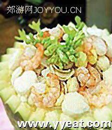 主料:鱿鱼、海参、香菇、虾肉、鲜贝、蟹肉、鱼皮各30克,黄瓜50克,南豆腐1盒