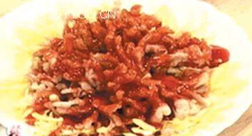 3、坐锅点火,倒少许油,待油热时放入番茄沙司,白醋、白糖、盐、料酒,用水淀粉勾芡炒匀,淋在里脊上即可。