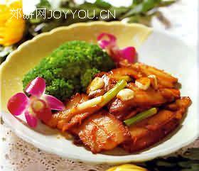 原材料:五花肉200克、姜、蒜子、葱各10克。 调味料:卤水2瓶(调味店有售)、XO酱10克、麻油5克。 制作过程: 1、卤水用锅烧开,五花肉洗净,切成大条,放到卤水里,卤至熟透,捞起切片,姜、蒜子切末,葱切花。 2、烧锅下油,放入姜、蒜子,煸锅,同卤肉煸炒至金黄。 3、卤肉炒至金黄时,再加入XO酱、葱花翻炒几次,淋入麻油即成。