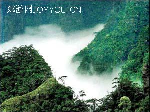 登山苦旅 从圣堂山脚下往上走,起初是石沙路,再往上就全是石阶了,很多路都是在悬崖峭壁上人工凿出来的。我们每人背负约30斤重的背包,走起来气喘吁吁的。导游是一个瑶族小男孩,是我们在路上偶然遇上的。当时,他很主动地问我们要不要导游。问他年龄,说是14岁。问他要多少钱,小男孩却连连摆手,说不用钱,只是想和我们玩,也想知道外面的世界,然后,羞涩地笑笑。 山里的风景果然绮丽,可是,才爬了几十级台阶,我们就气喘如牛。小导游看着我们那副东倒西歪的样子,忍不住哈哈大笑,说,从这到山顶有3333级台阶要爬呢。然后,背过我的背包,轻松地跳了几级台阶。 山含烟,云恋树 圣堂山里,印象最深的是山上漫天的云,漫天的雾。雾起的时候,仿佛周围裹进了似有似无的蝉翼纱里,山峰和树好像晨起般慵懒;偶然见到雾散时,就会看到,触目处的如石笋一样的山峰就好像刚醒来的美人,正撩开纱帐走出来,一露芳踪。临近山顶,刹那间,云海就在此时涌现出来,纷纷涌涌,如潮水般弥漫在我们周围。置身在这样的美景里,真有做神仙的感觉,仿佛甩甩水袖,便旋转在天堂之上。 当我爬过一个景点的时候,偶然往下一看,但见下面深不见底,是一个深谷,谷旁是一排峭壁,像条条分立的石笋,犹如手指插天。谷底隐隐可见绿意苍苍,有云雾从谷底升腾而起。有风吹过,云雾升腾起来,弥漫着,好像那里藏了什么奇特的东西,显得神秘莫测。我惊呆了,不知道为什么竟然想到了金庸的《神雕侠侣》中提到的“绝情谷”,这里那么幽深,是否也有灿烂的大片情花、飘逸如仙的小龙女? 圣堂山的云,必然要有山峰、奇树来映衬才真的好看。这里的山体全是由巨大的岩石构成,很陡地直上直下,岩石间又夹有道道裂缝,将巨石蚀刻得千姿百态,俊俏嶙峋,上面还有一些红色的色调,似乎就是所说的“丹霞地貌”了。 这里还有很多的树,最著名的是那棵形如巨伞的奇异古树,是一株千年铁杉,当地人称之为“平安树”。许多人的名片印有它,甚至百姓家中厅堂上也贴着它。 太阳渐落的时候,在渐渐远去的阳光里,云海翻滚成金色的海洋,一瞬间,又幻变为彩色的晚霞,肆意地蔓延着,从视线中一大片一大片地延伸出去,延伸到天际,与落下的太阳结为一体。 云、山、树、花,再加上若隐若现的人们游弋其中,就像在连绵不绝的山群里,有一滴晶莹的泪,落在天堂里。我不禁想,如果有朝一日,当这个“养在深闺人未识”的美丽的小女子掀开面纱,露出绝世容颜的时候,那该是让人多么震惊的情景。